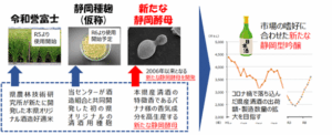 本プロジェクトでは、現代のニーズに合った「吟醸香豊かでキレの良い味わいの酒質」を実現する新しい静岡酵母の開発に取り組みます。本県産の清酒の出荷額及び製造数量は、コロナ禍以前は非常に好調でしたが、コロナ禍を境にやや低迷傾向にあります。静岡県では、このような厳しい状況下にある県内清酒業界を支援するために、新たな県オリジナル酒造好適米「令和誉富士」や本県初となる県オリジナル清酒用種麴「静岡種麴No.1」の開発を行ってきました。