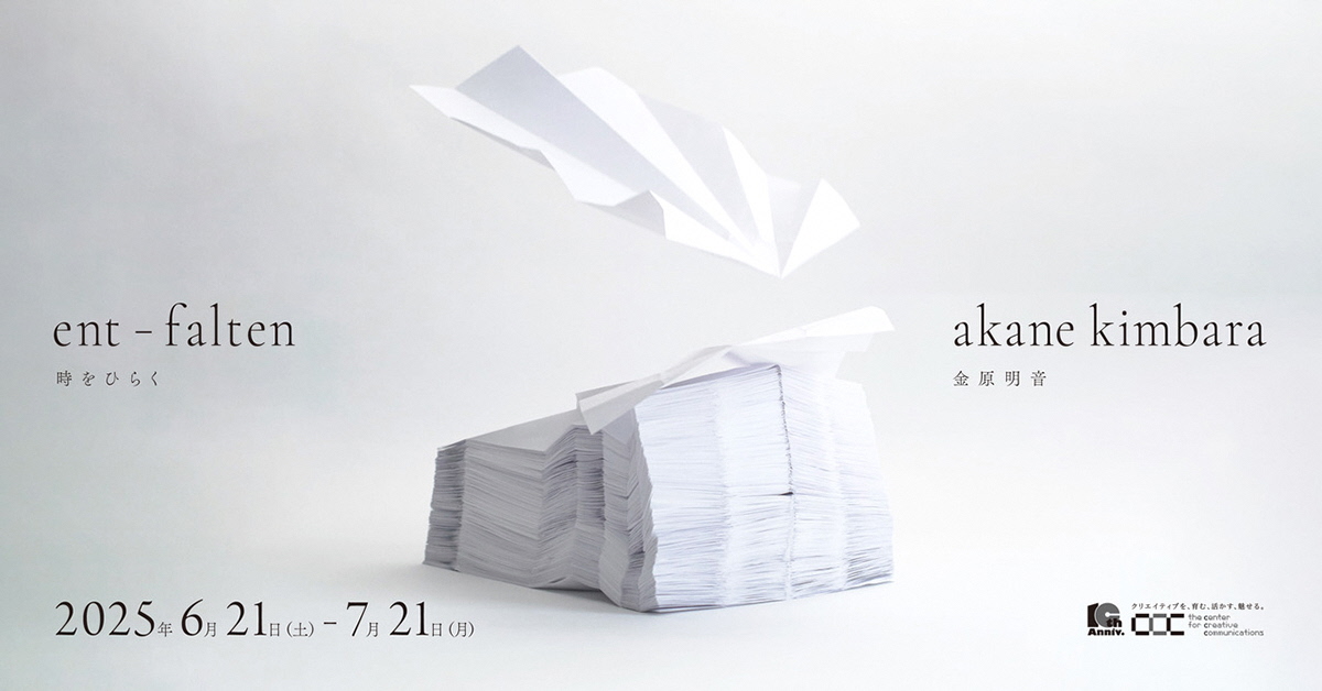 折りシワという過ぎ去った時間の痕跡をひろげながら、展示期間中に状況が変化するインスタレーションや、鑑賞者と作家の協働による紙飛行機が飛び交う映像作品は、誰もが持つ時間の感覚に問いを投げかけます。